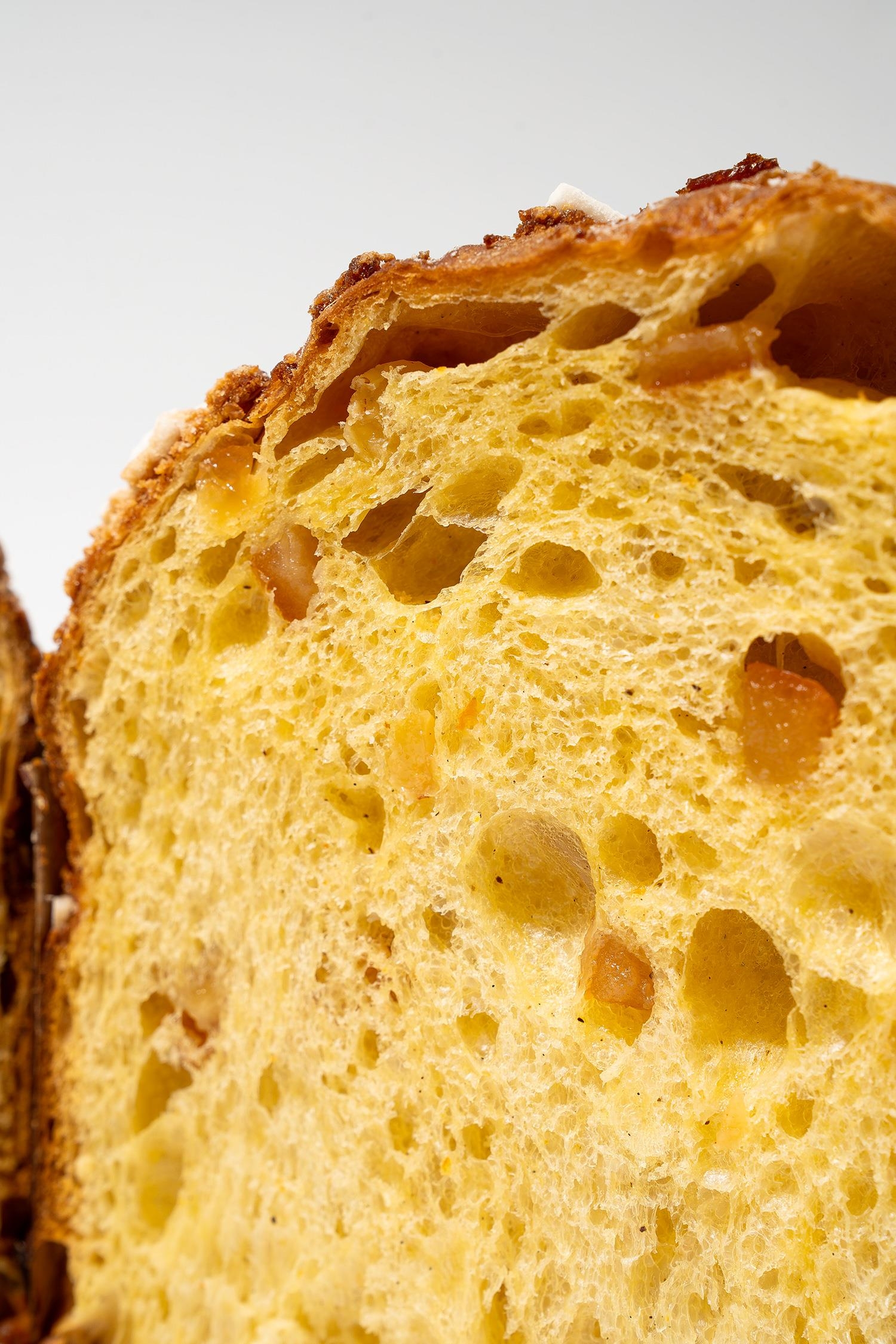 Harina de trigo, mantequilla, agua, naranja confitada (naranja, azúcar, glucosa), azúcar, yema de huevo pasteurizado, pasas, limón confitado (limón, azúcar, glucosa), nata, miel, masa madre, sal, leche desnatada en polvo, vainilla