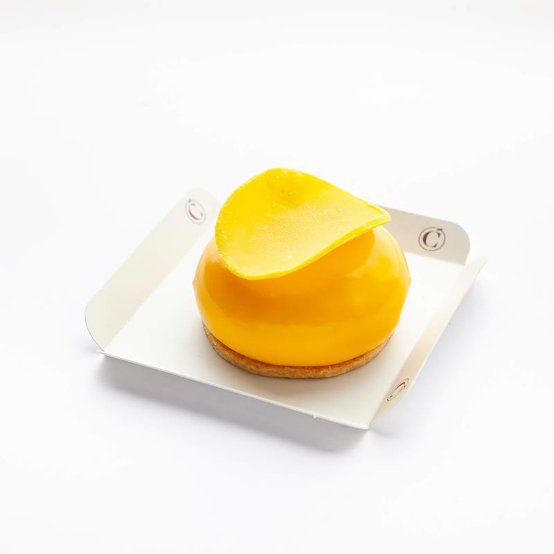 Mousse de mango con un interior de crema de citricos i geleé de limon