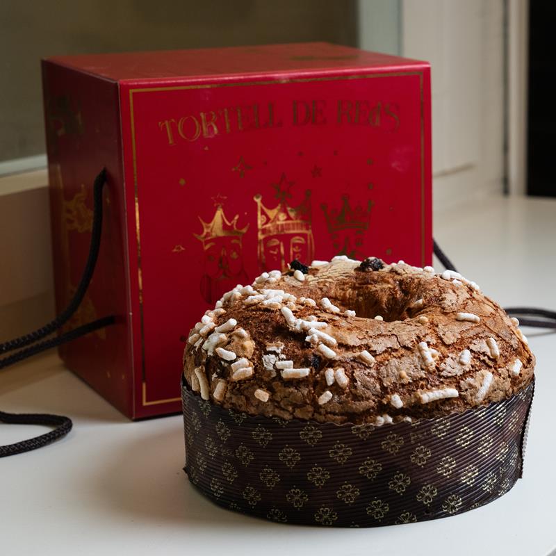 Panettoene con inclusiones de chocolate negro. Con rey y haba